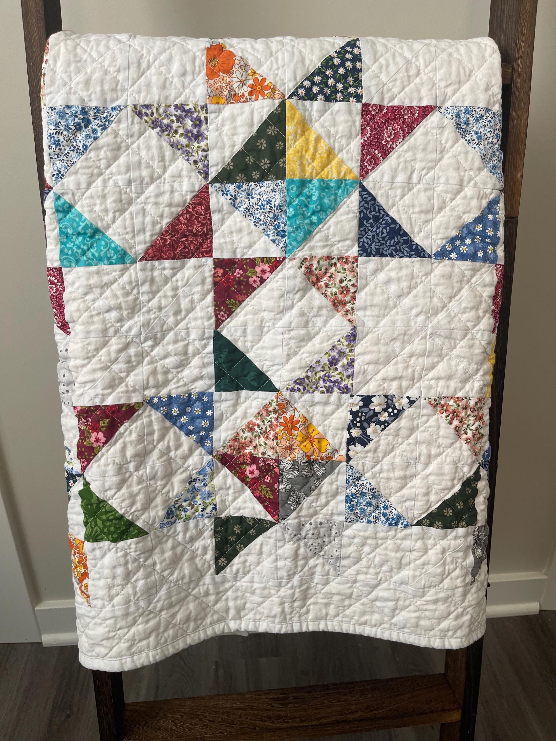 Handmade Vintage Inspired Star Patchwork Baby Quilt – Modern Farmhouse Style