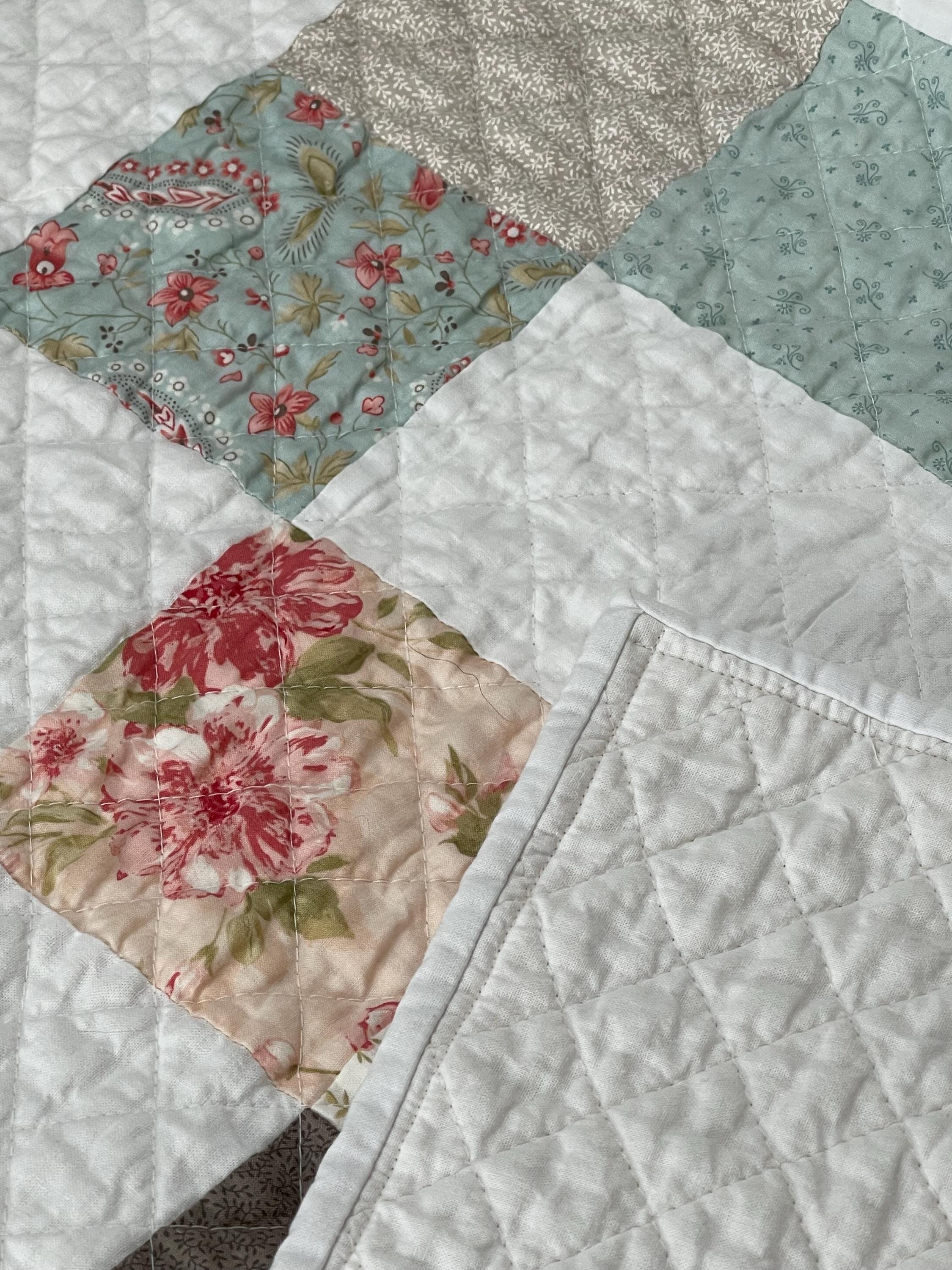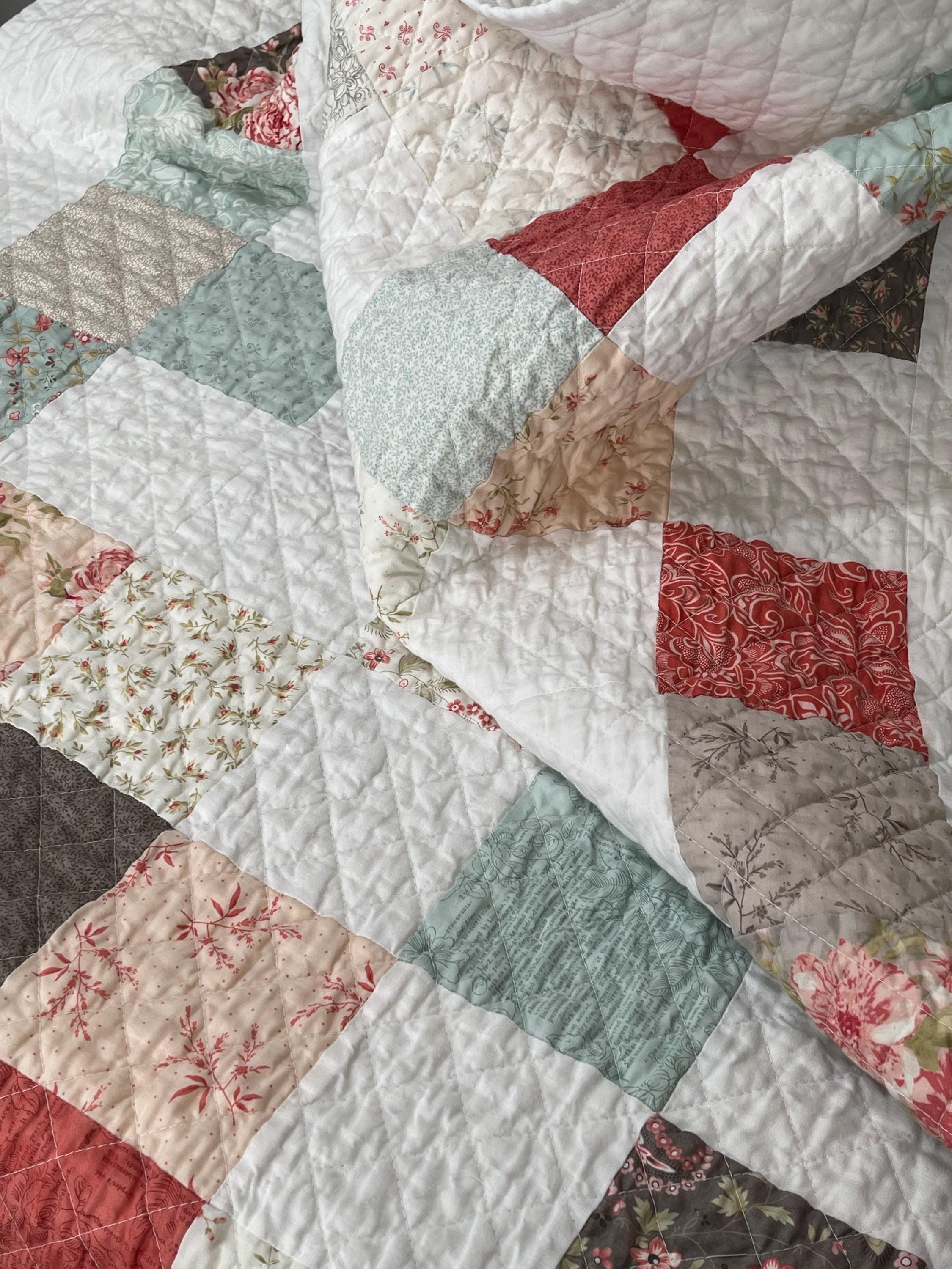 Hand-Quilted Look: The entire quilt is finished with a traditional diagonal grid quilting pattern that secures the layers and adds a wonderful, crinkly texture after washing, which is a hallmark of a cozy, well-loved quilt.