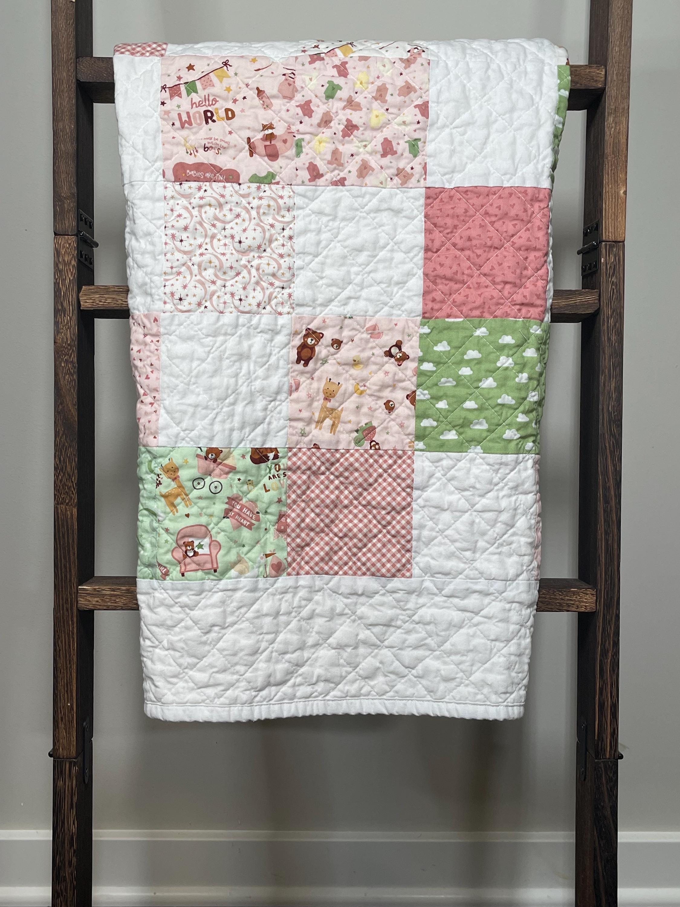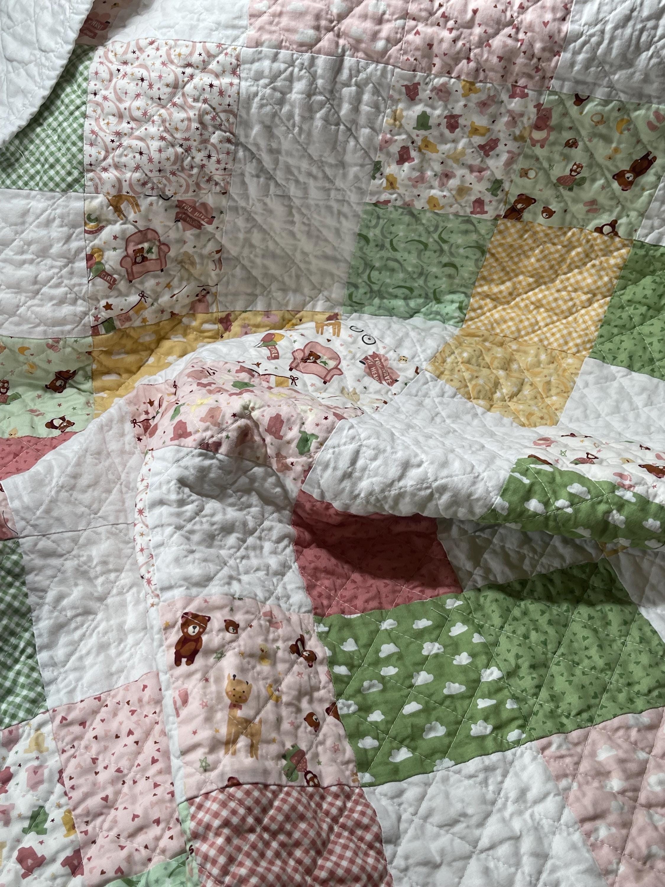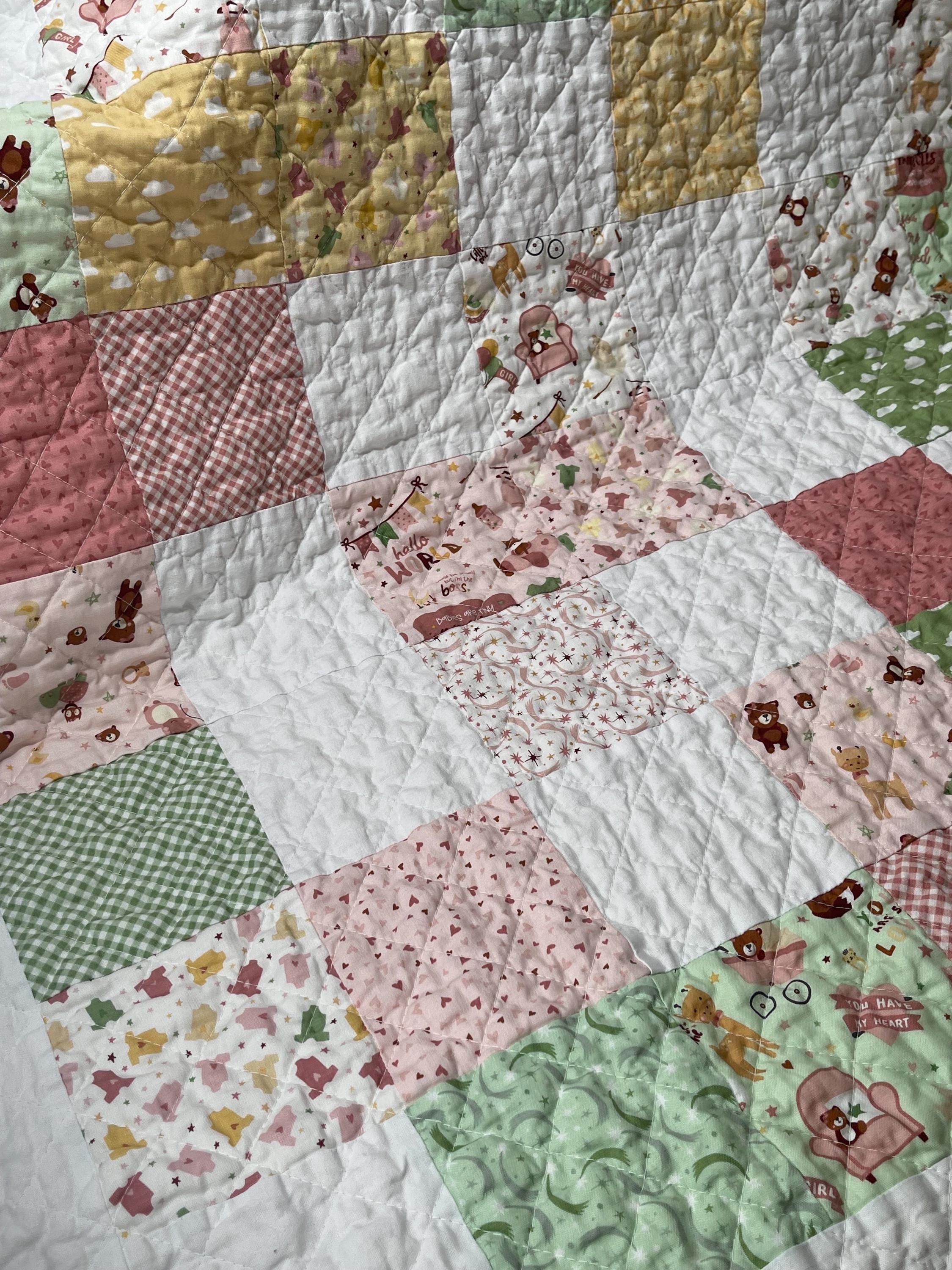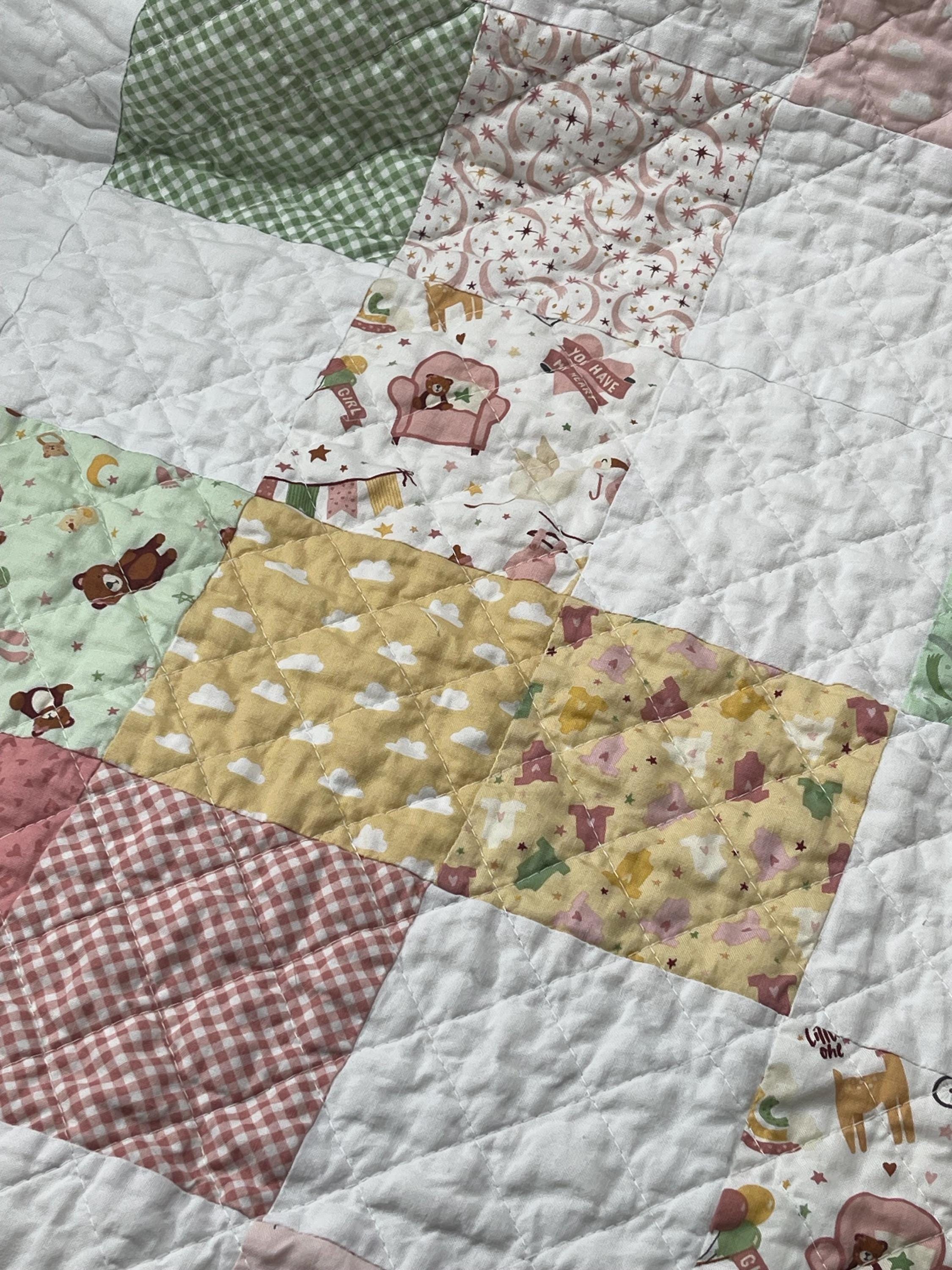 Wrap your little one in love with this beautifully handcrafted patchwork baby girl quilt, a charming and cozy addition to any nursery. Made with a delightful mix of soft fabrics, this blanket is a true heirloom piece, perfect for snuggles, playtime, or as a decorative touch.