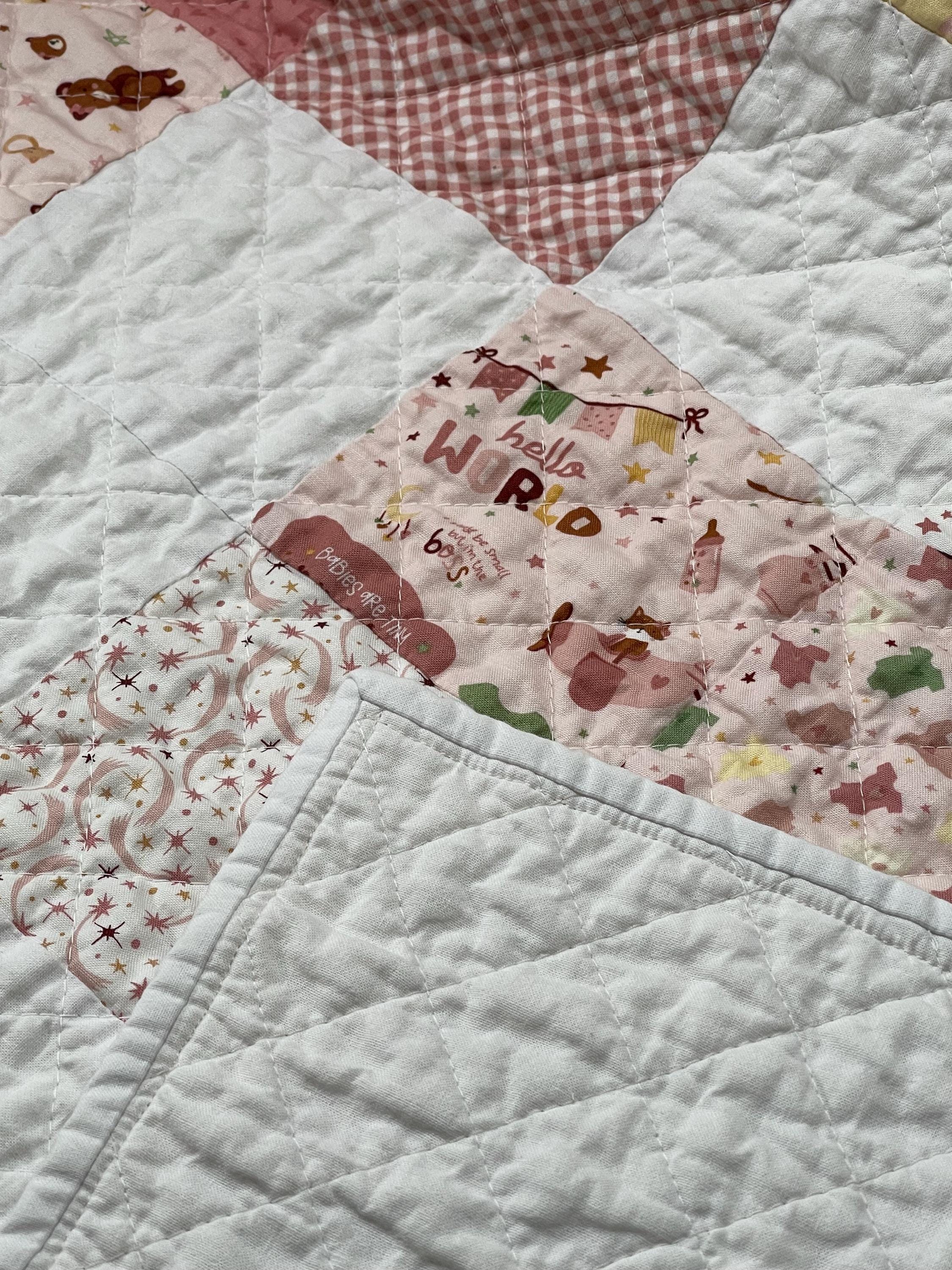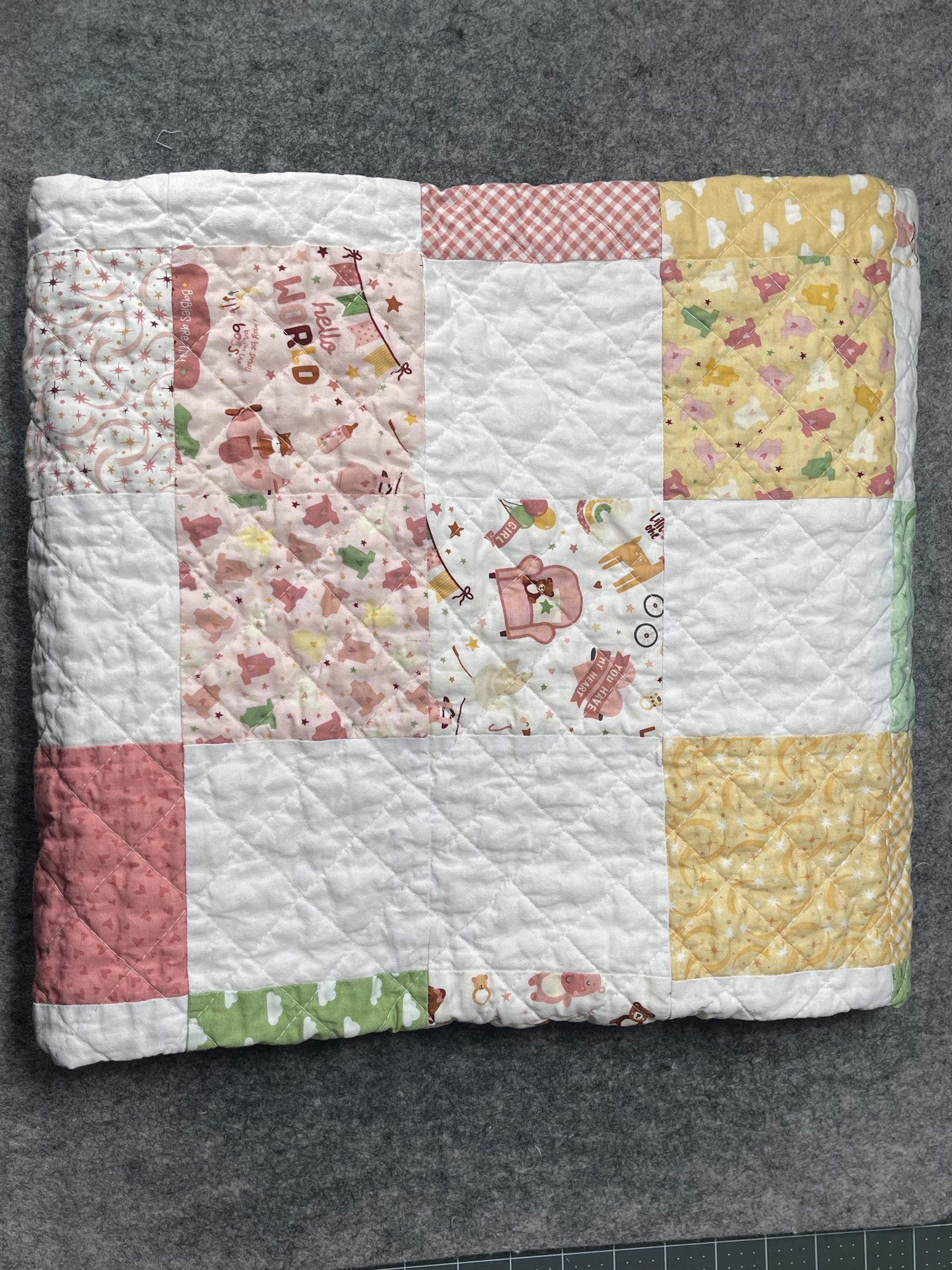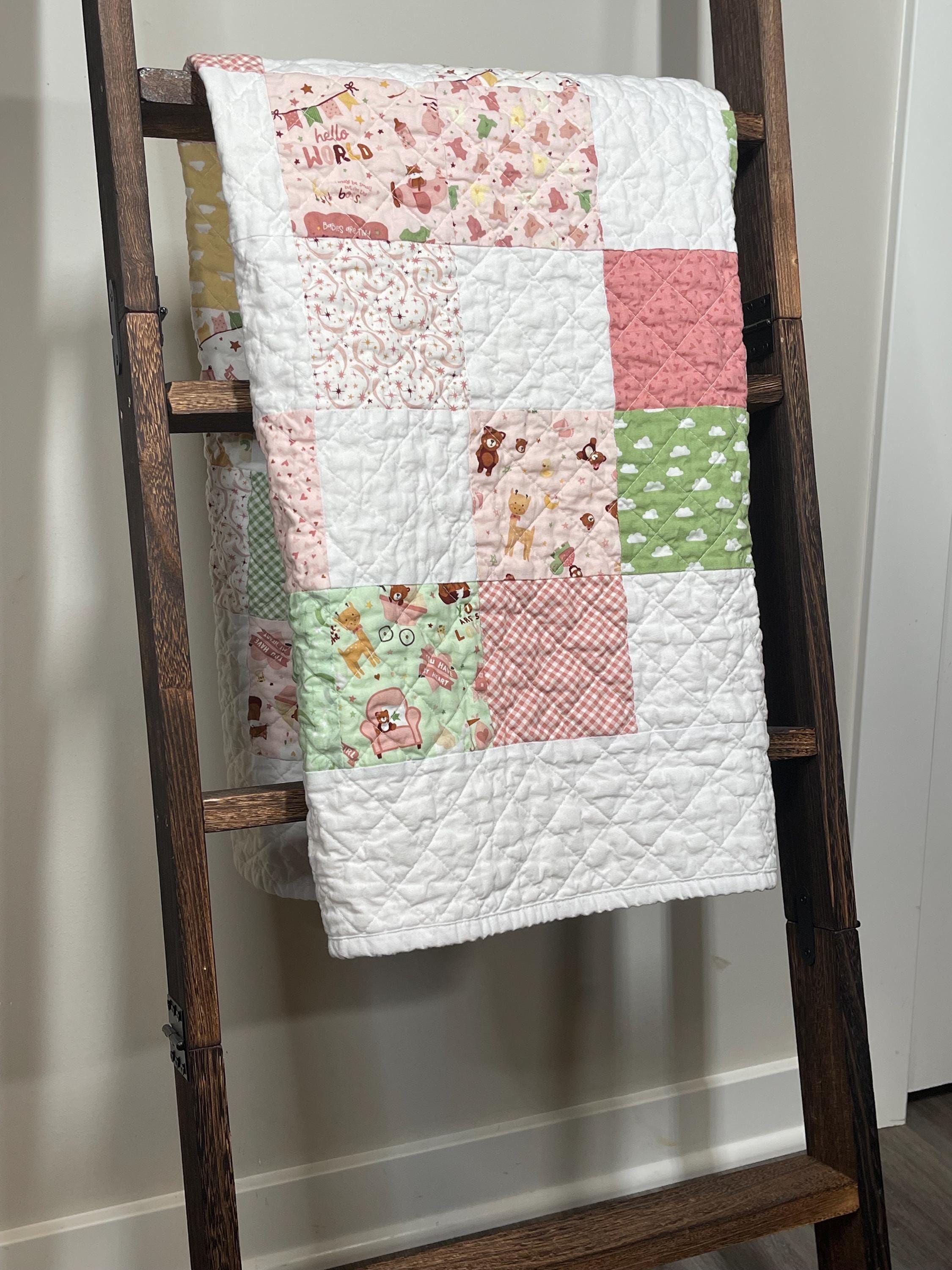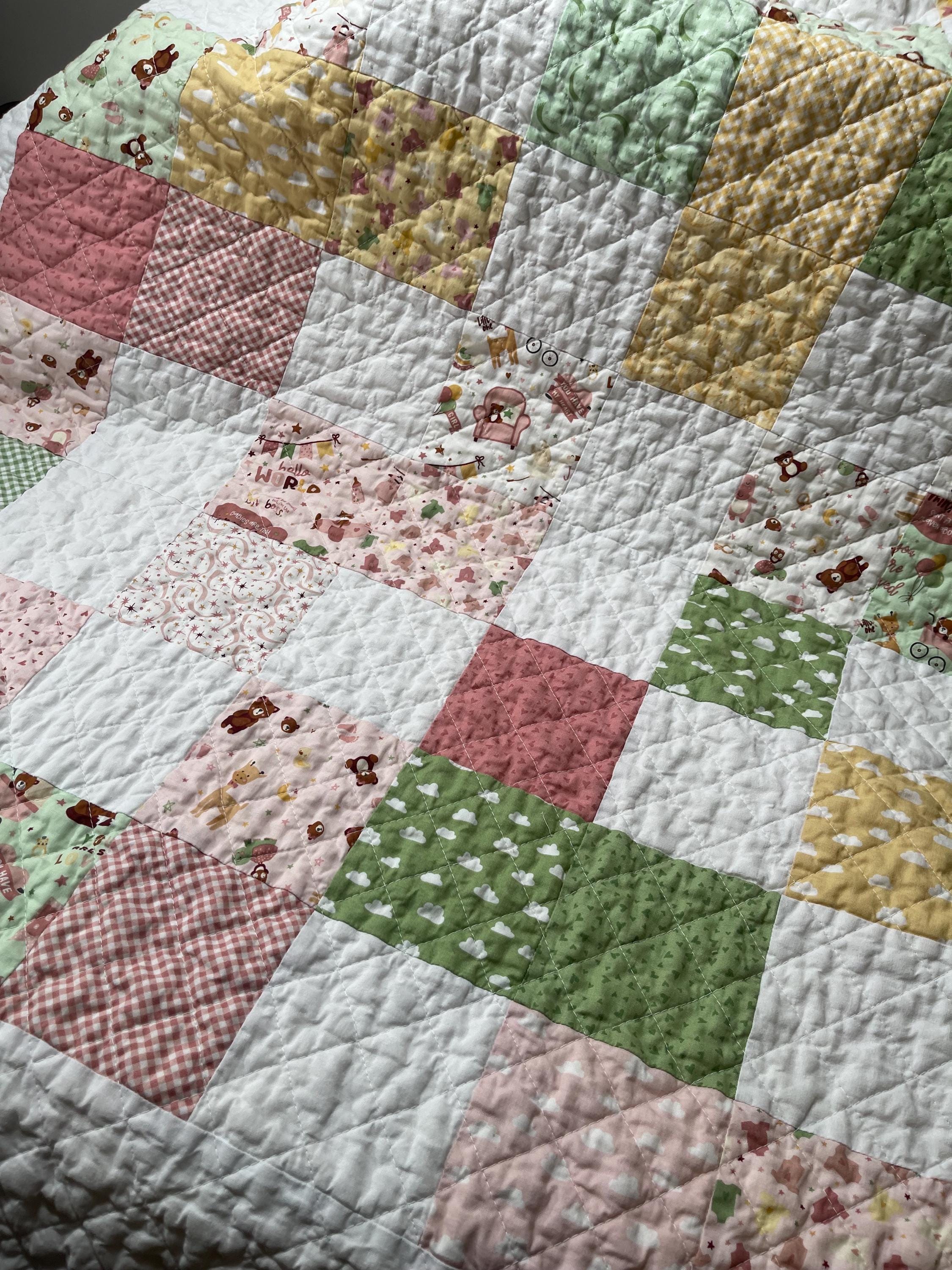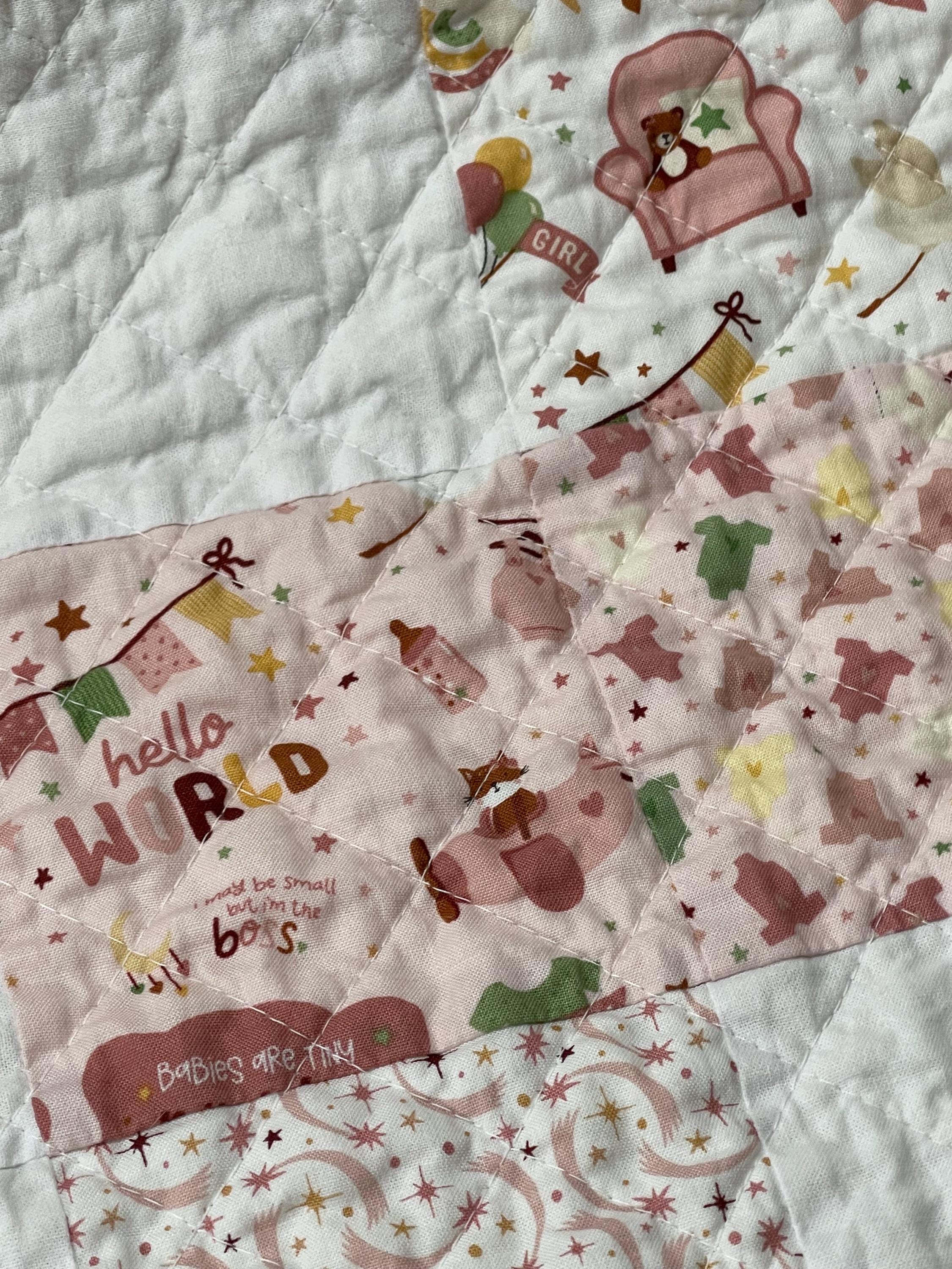 Wrap your little one in love with this beautifully handcrafted patchwork baby girl quilt, a charming and cozy addition to any nursery. Made with a delightful mix of soft fabrics, this blanket is a true heirloom piece, perfect for snuggles, playtime, or as a decorative touch.