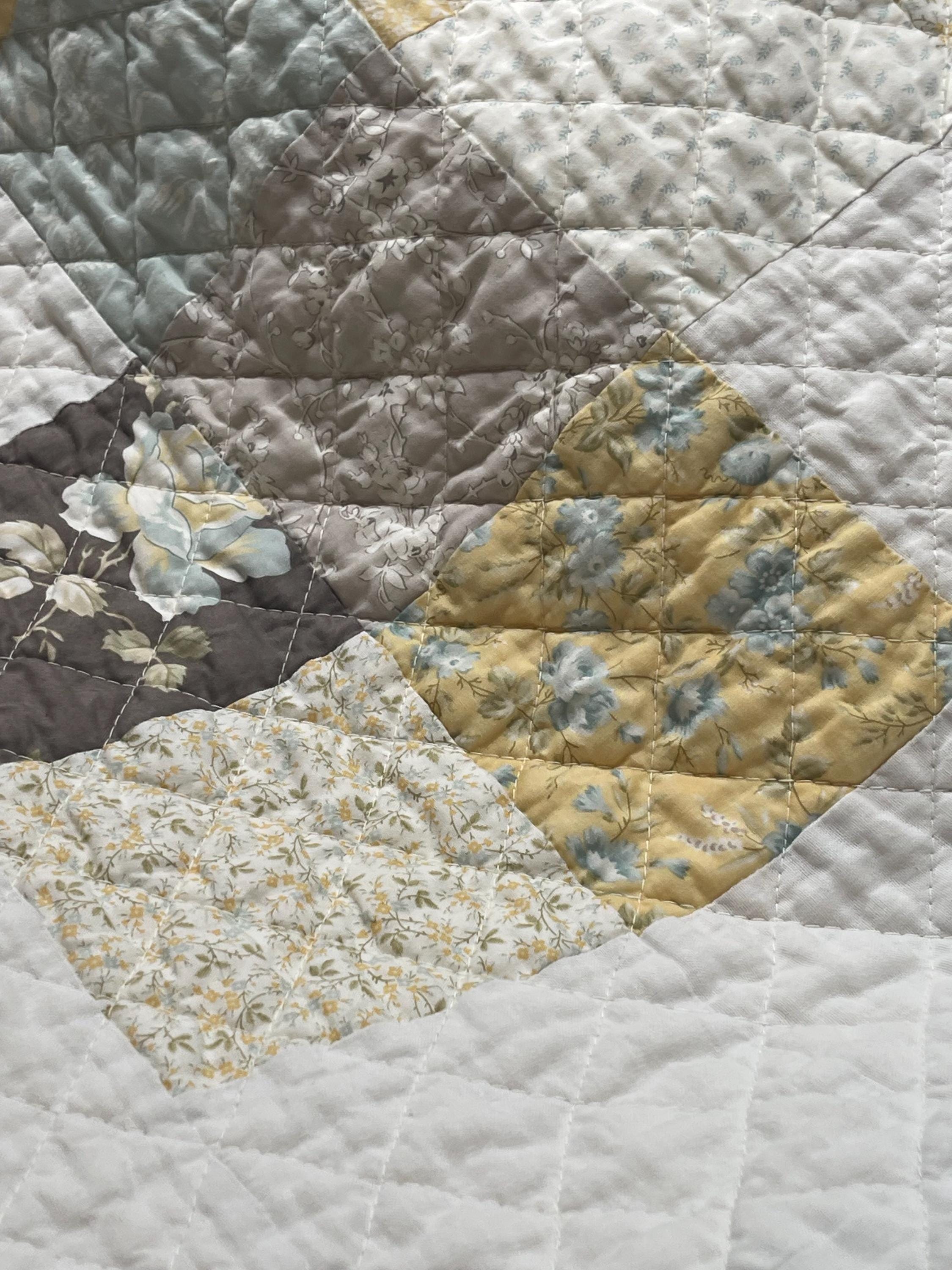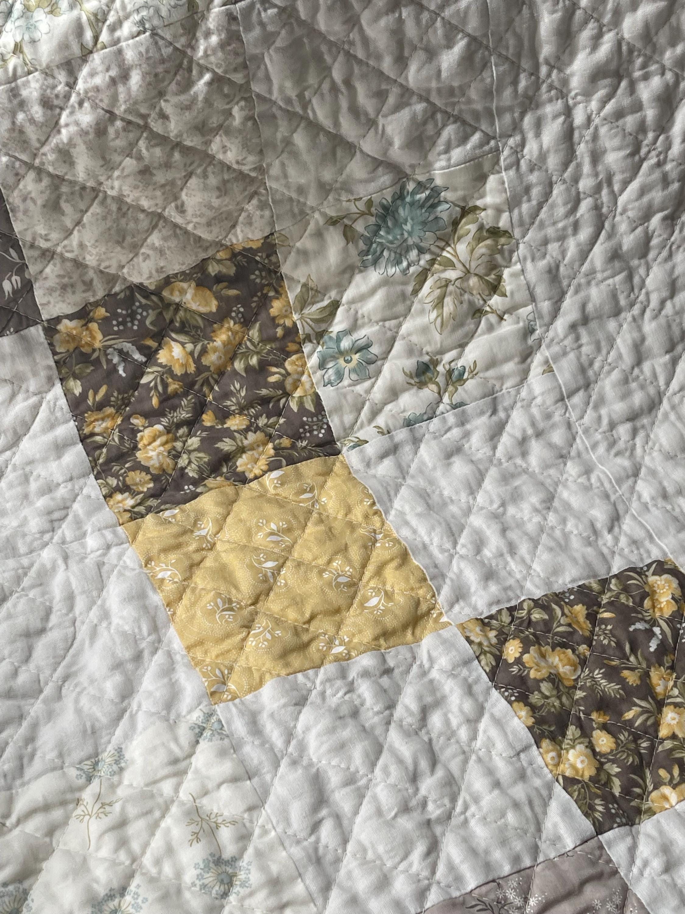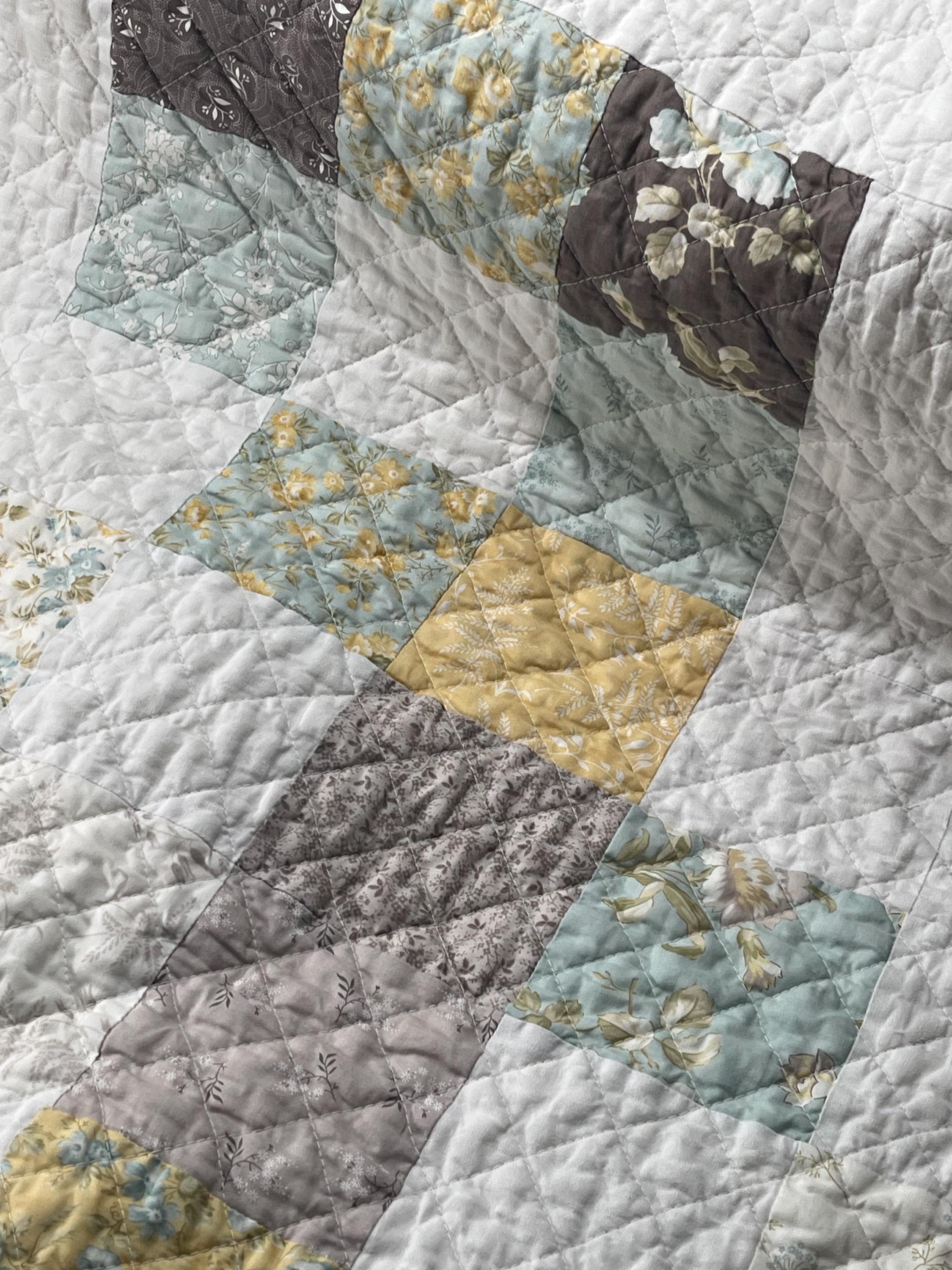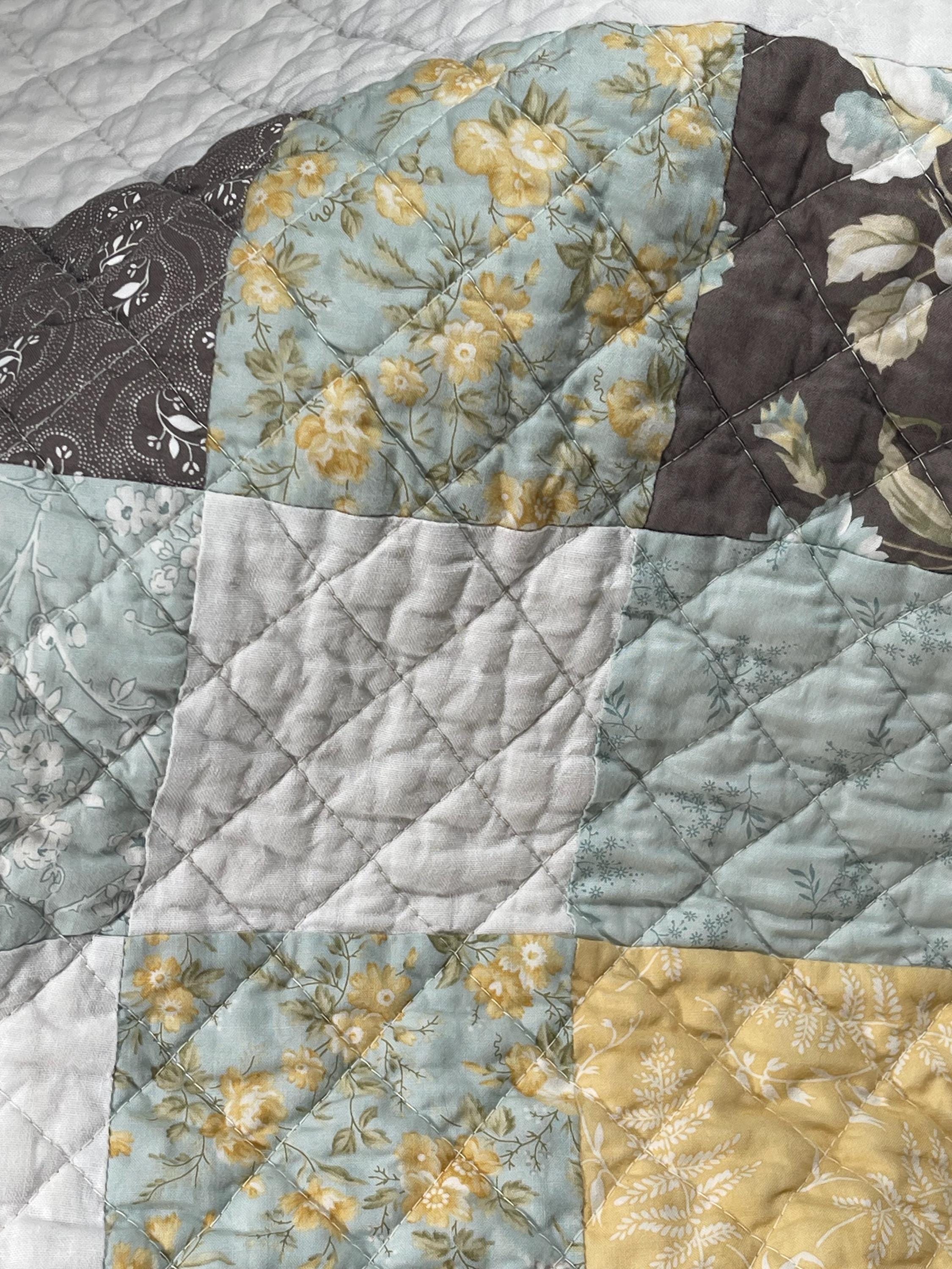 Cloud-Like Texture: The entire quilt is finished with an all-over diagonal grid quilting pattern. This machine quilting not only secures the layers but also imparts a lovely weight and that cherished crinkled texture that makes a quilt so inviting and soft after washing.