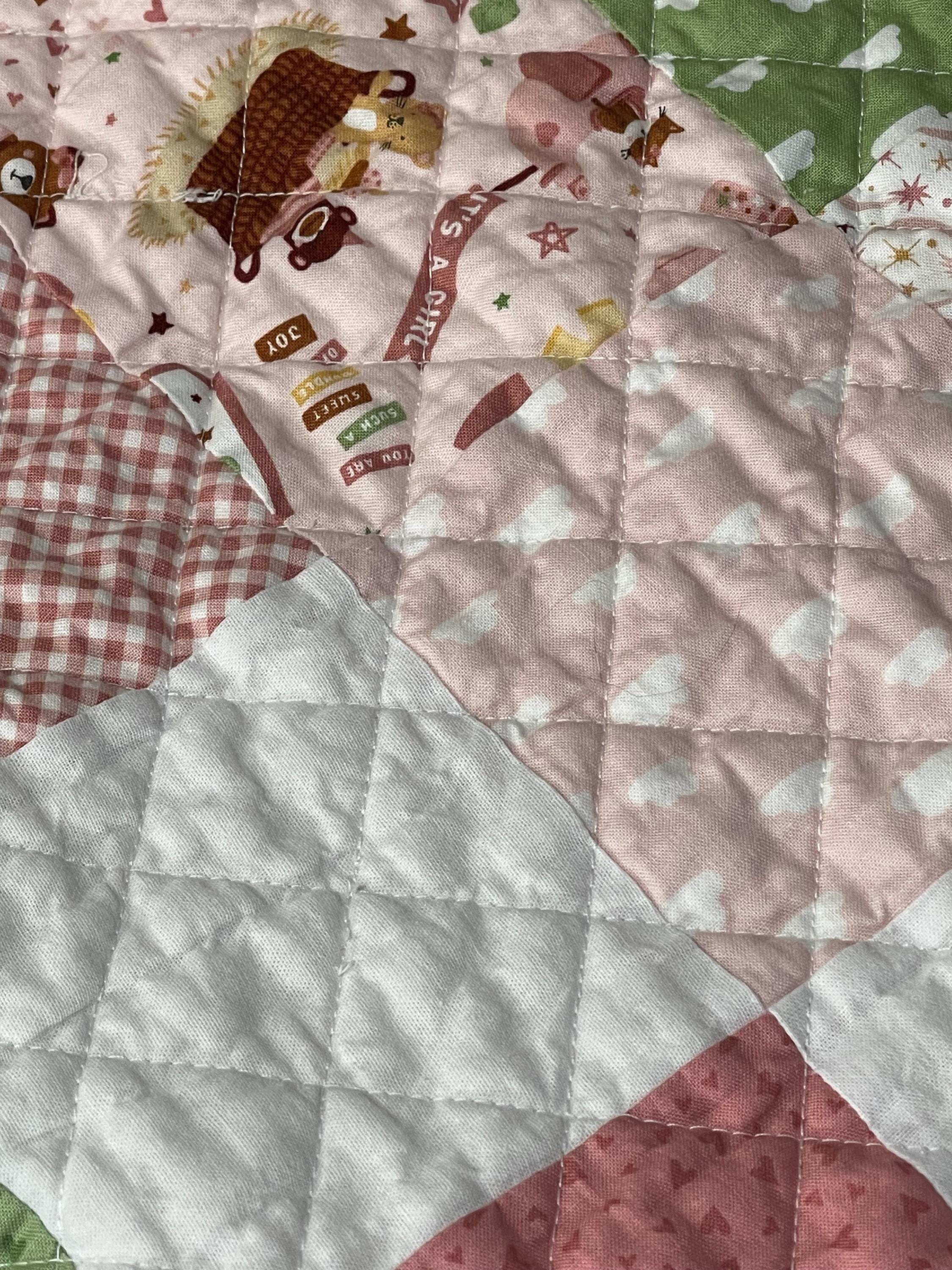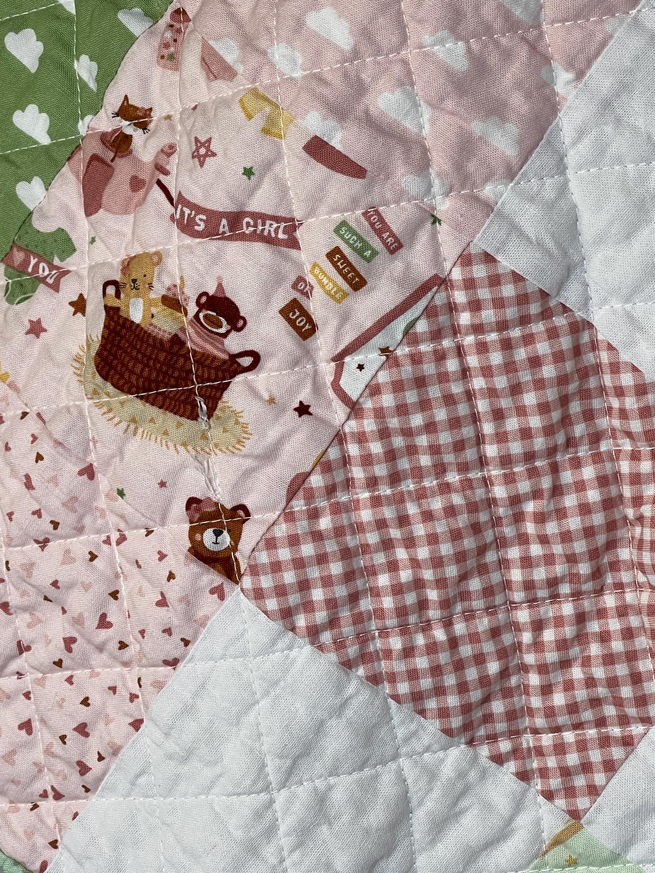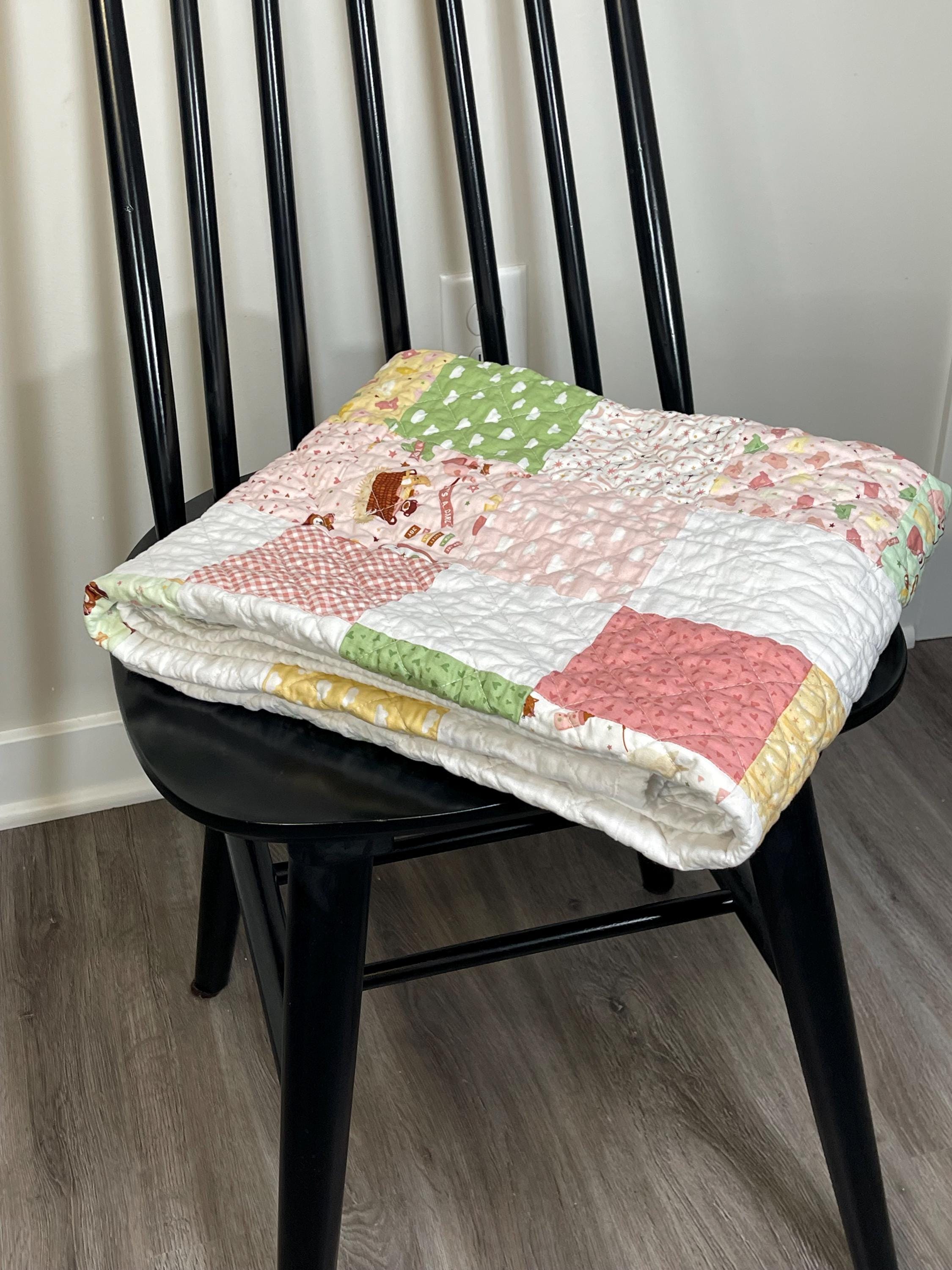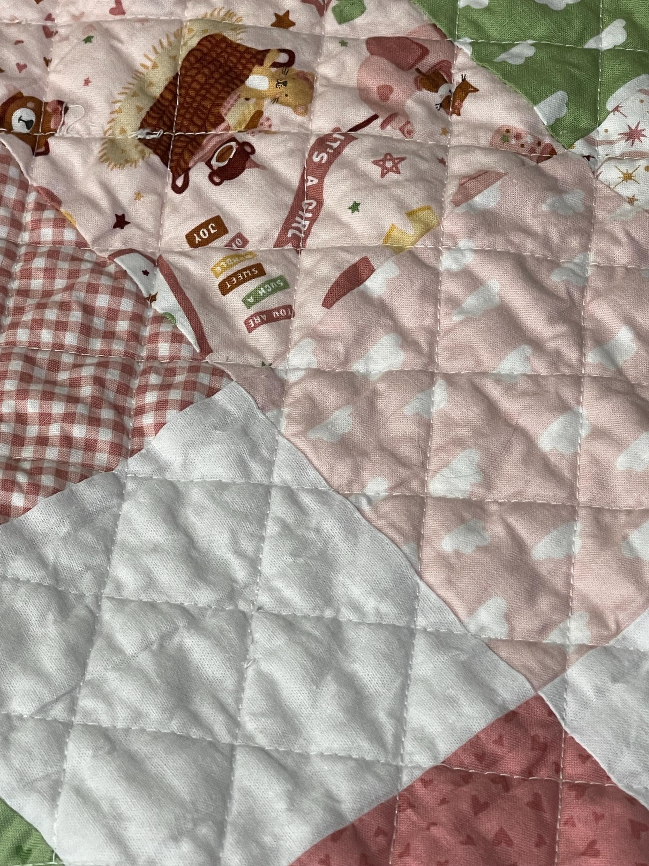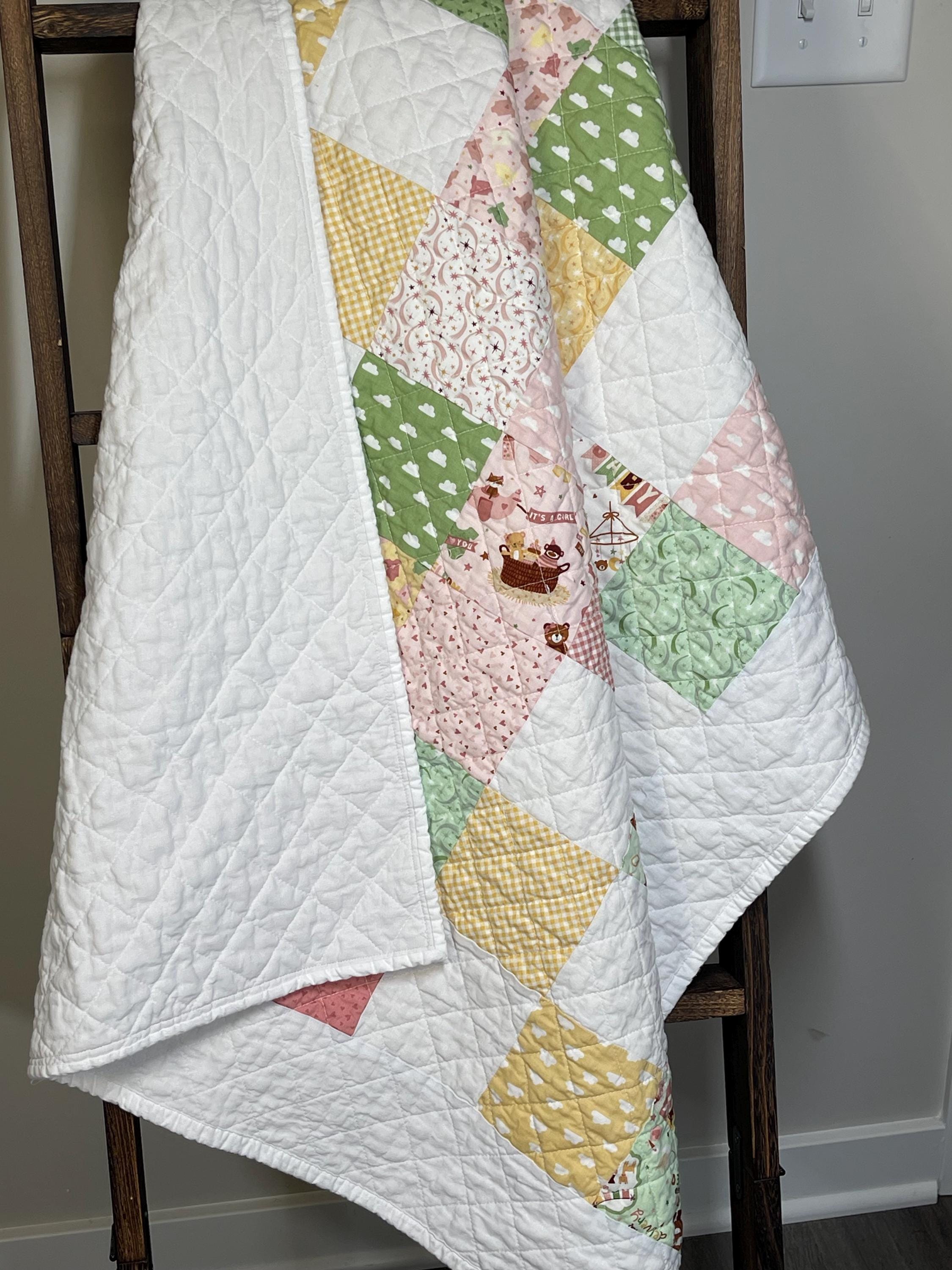 Wrap your little one in love with this beautifully handcrafted patchwork baby girl quilt, a charming and cozy addition to any nursery. Made with a delightful mix of soft fabrics, this blanket is a true heirloom piece, perfect for snuggles, playtime, or as a decorative touch.