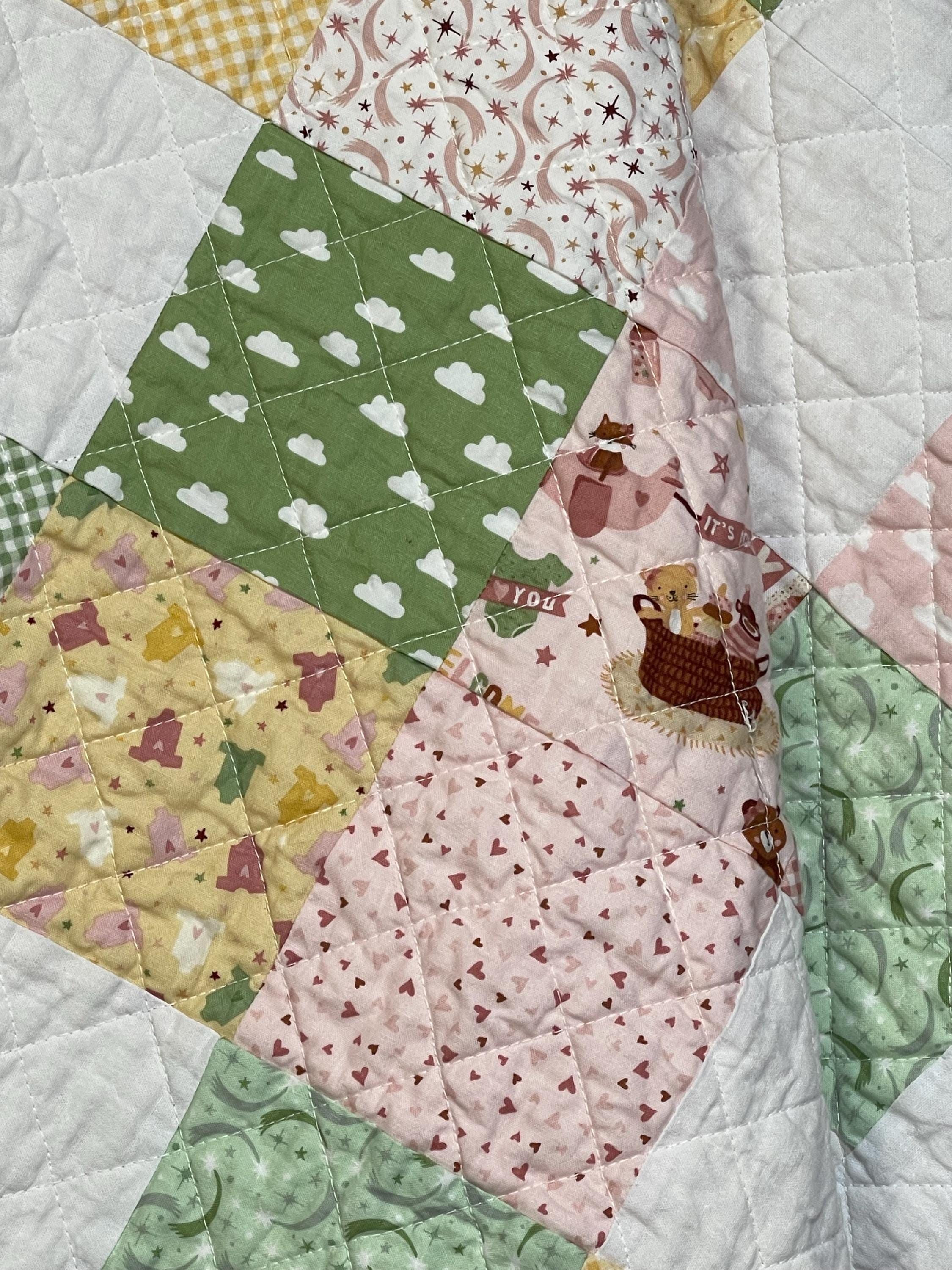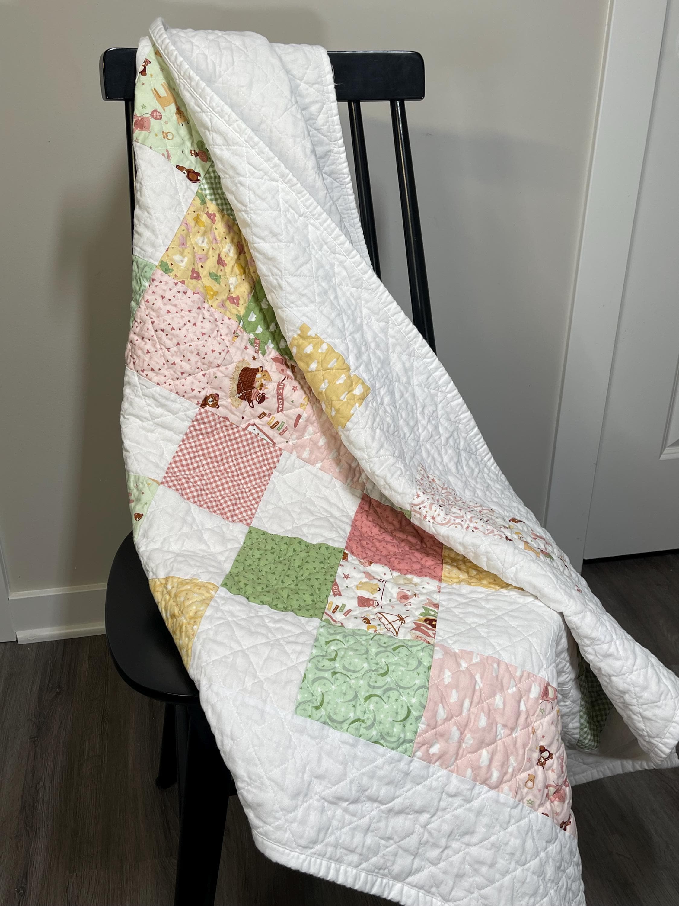 Add a touch of handcrafted serenity and timeless beauty to your nursery with this exquisite quilt!