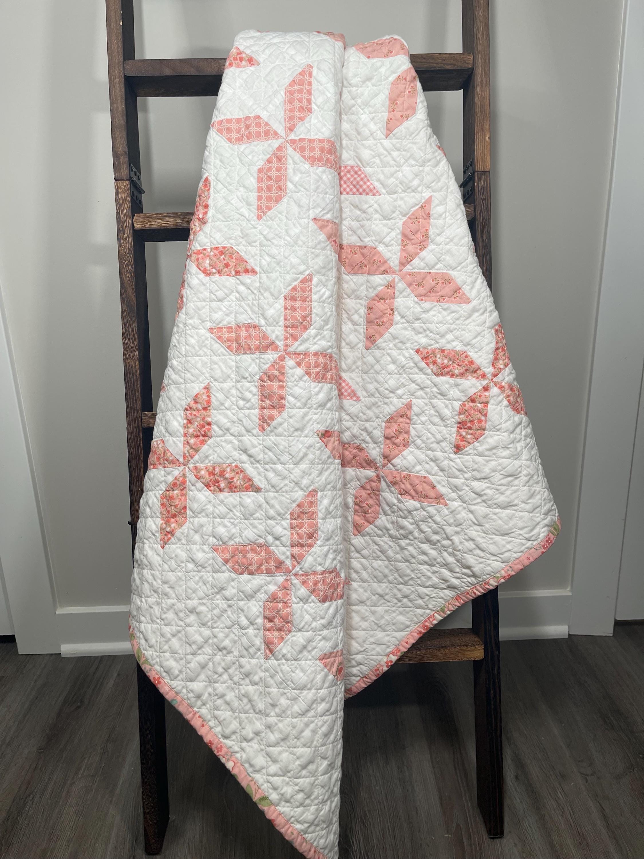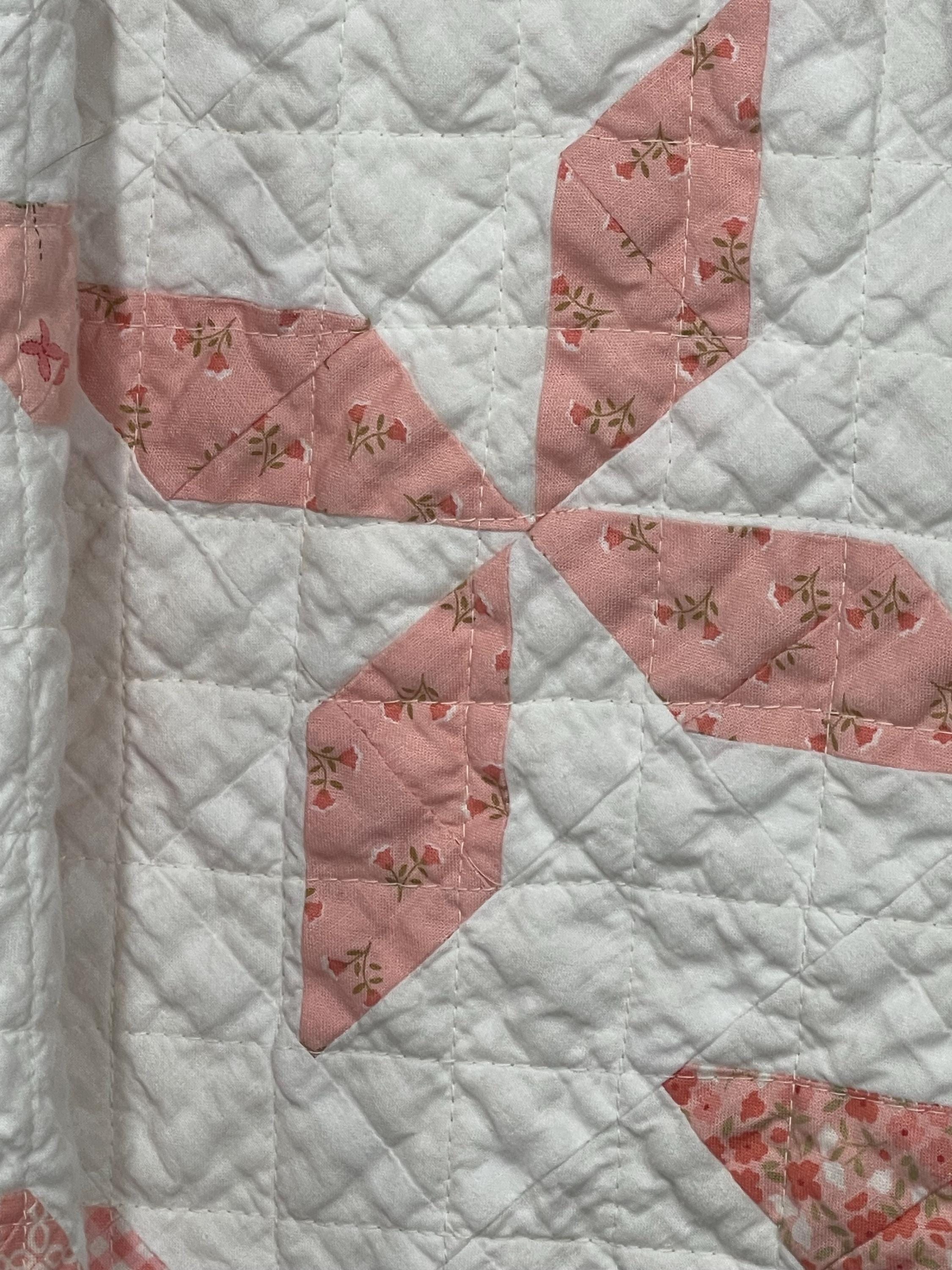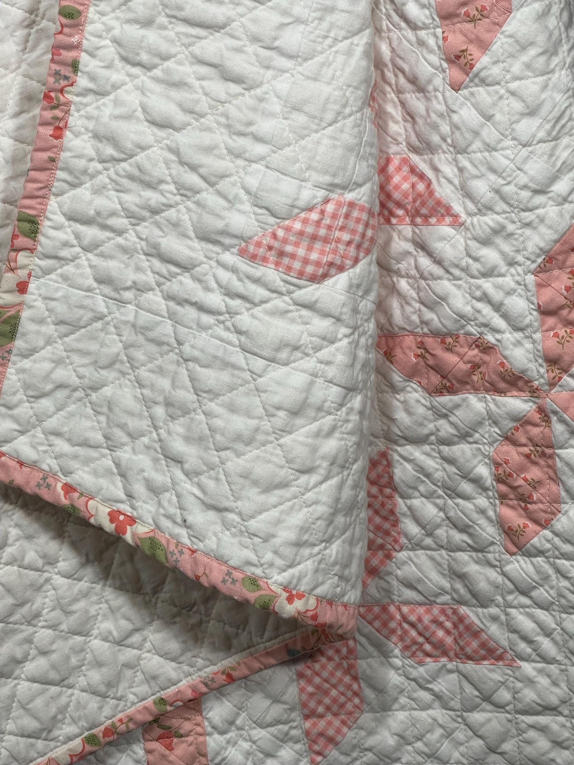 Handmade Heirloom Baby Quilt – Pink Floral & Gingham Pinwheels