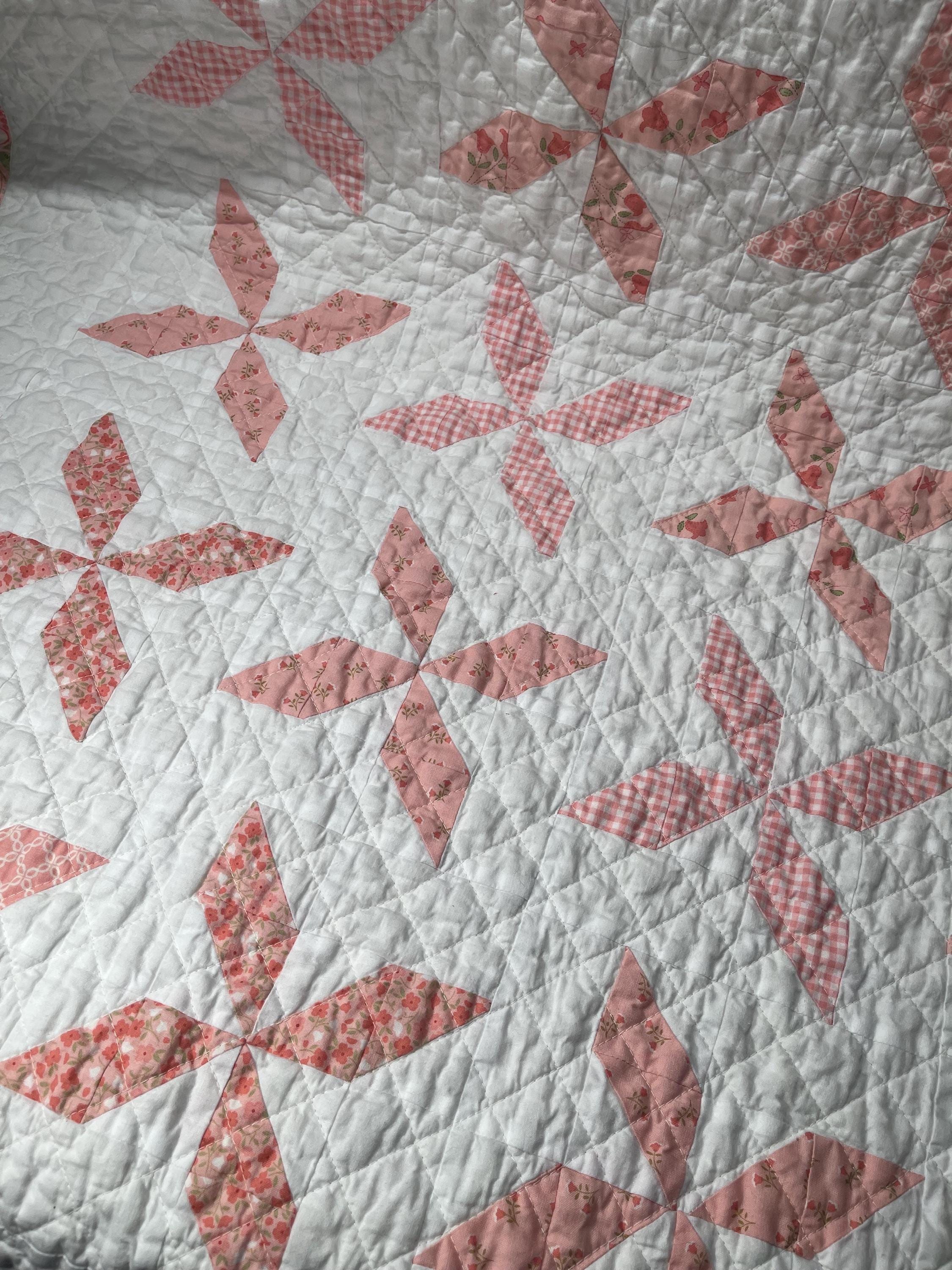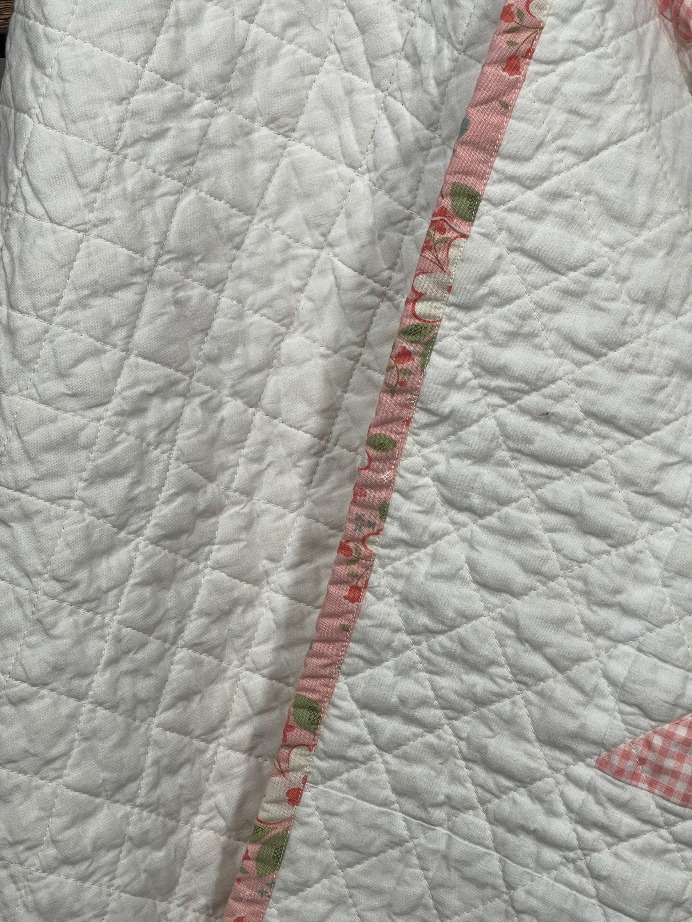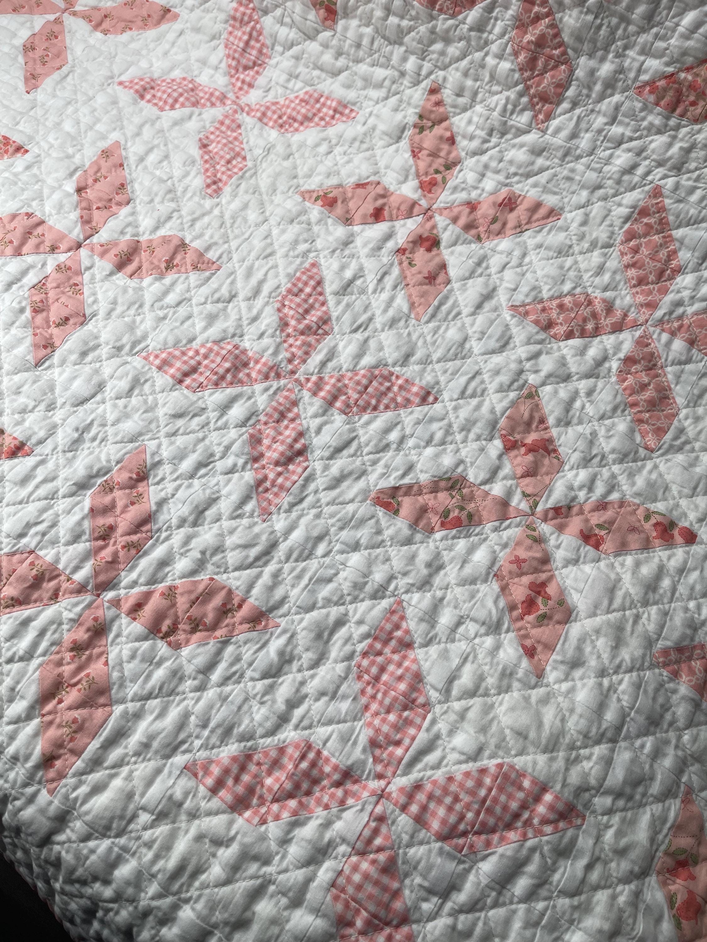 Handmade Heirloom Baby Quilt – Pink Floral & Gingham Pinwheels
